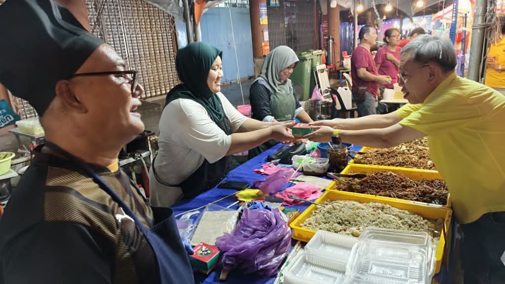 (古晋3日讯)砂拉越副总理兼石角区议员拿督阿玛沈桂贤走访石角老街第8届《约定在中秋·中秋美食节》。