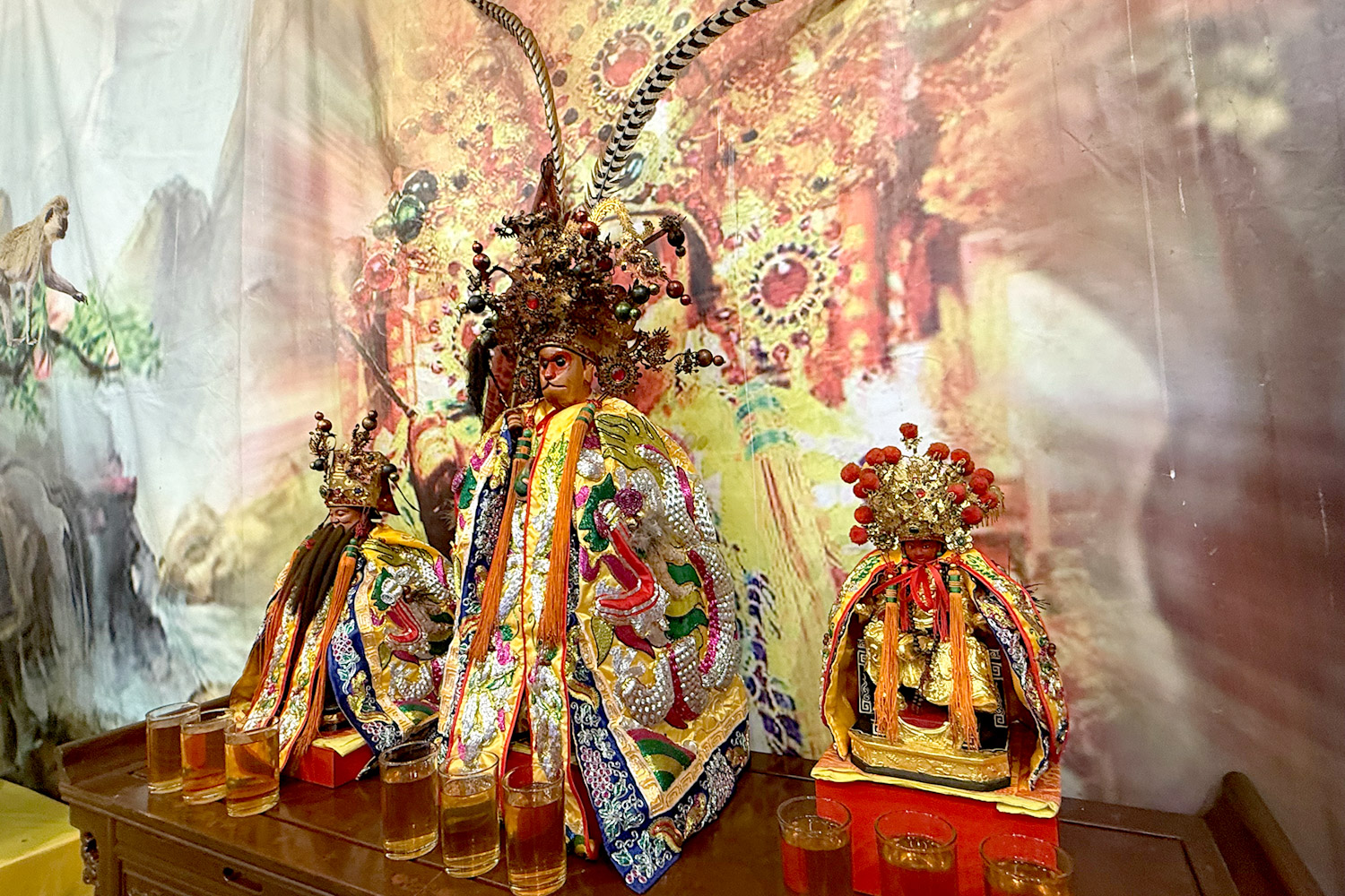 (3)今次巡游有6个神轿,即哪咤三太子、法主公神轿、关公神轿、大二伯爷神轿,姐妹花石娘娘刀椅神轿以及孙大聖佛祖神轿。