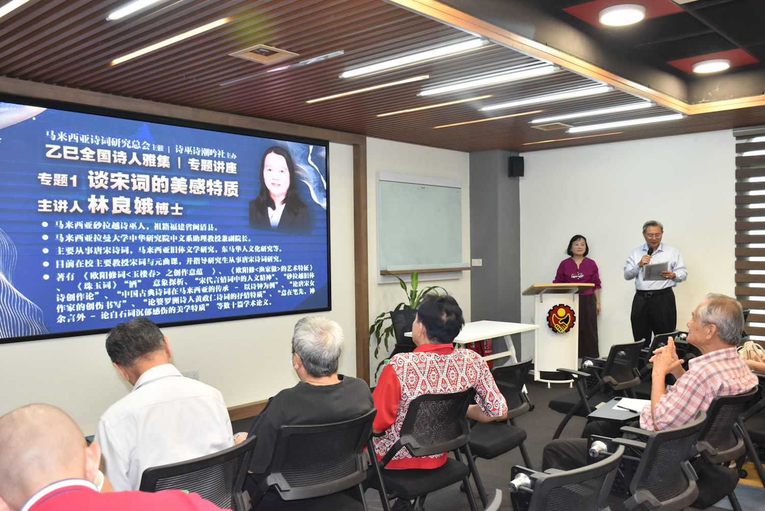 林良娥博士(马来西亚拉曼大学中华研究院中文系助理教授兼副院长),主讲题目为《谈宋词的美感特质》。