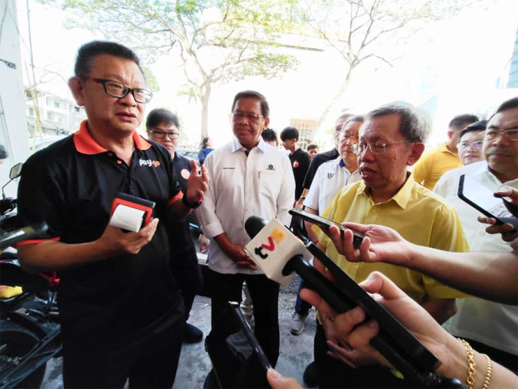 “Pay & Go”创办人兼科技首席执行员黄德东今日向砂拉越副总理拿督阿玛沈桂贤解说“Pay & Go”系统操作,以手持PDA设备为核心,让巡逻员可随时扫描车牌与停车数据,无需依赖电动巡逻车,系统减少纸质罚单使用,更环保。