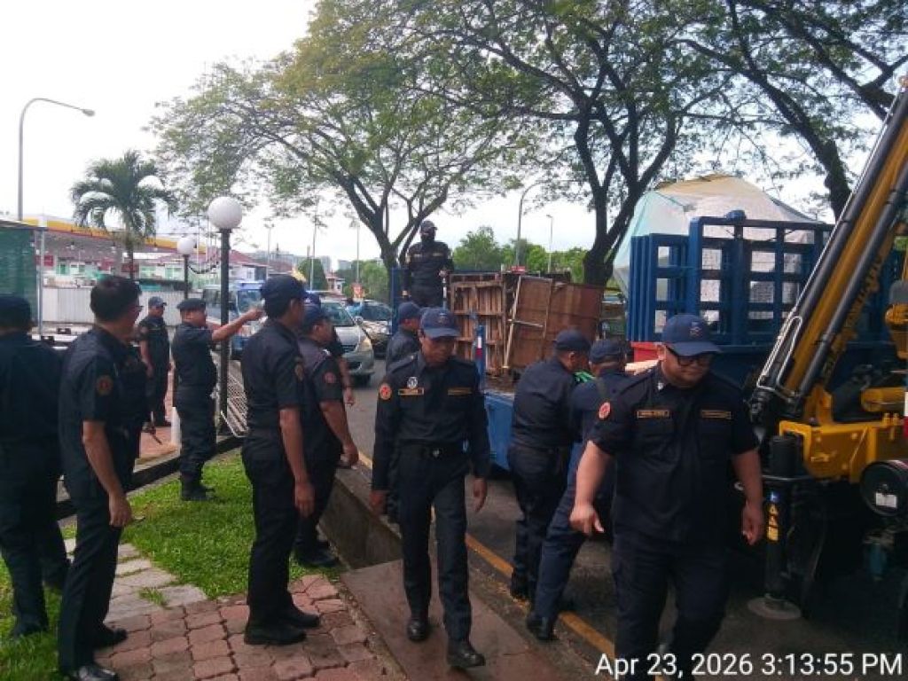 (古晋24日讯)古晋南市市政局今早展开“摊位行动”(Opps Gerai),针对市区多个地点的非法摆摊活动展开执法,并对违规营业者采取行动与充公相关物品。