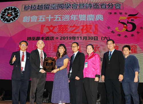 2020年留台人《文华之夜》将于美里举行。砂留台同学会副总会长長兼美里省分会主席张玉蓮(左三)从砂留台同学会总会长陈章远手中接领主办权。左一是诗巫省留台同学会主席张济亮。