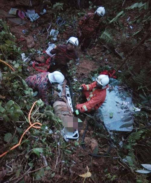 肇事罗厘是昨天傍晚在加拿逸县桑镇的翁贡路(JAlan Ngungun)疑自行意外,失控冲落路旁斜坡,侧翻在大约70尺的山崖下,司机身受重伤,夹在车底下,当场死亡。