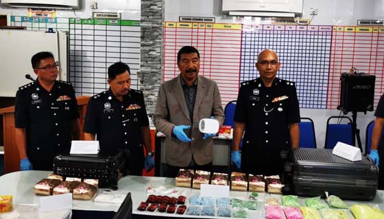 他指出,警方卤获的毒品包括重达9公斤的冰毒、1万6千250粒各种颜色的爱他死迷幻药、349克K他命粉末、449克爱他死粉末、以及2千250粒多种颜色的“一粒眠”迷幻药;市价超过百万令吉。