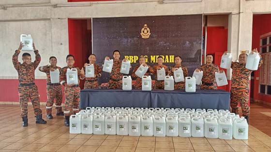 较早时,这2家企业也移交1千公升的消毒液予砂中区消拯局,为有需要的公共场所进行消毒。
