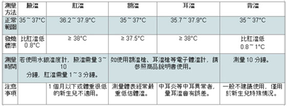目前适用的体温测量方法,包含肛温、耳温、腋温、口温、背温、额温,依照体温测量精准度与方便度整理如下。