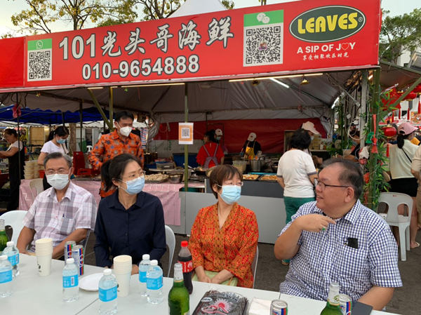 拿督黄国辉与众理事们周五晚上莅临中国驻古晋总领馆的中华美食档,获中国驻古晋副总领事宋长虹、邵笑领事的热烈欢迎,众人更在品尝东北传统美食大赞唇齿留香回味无穷。