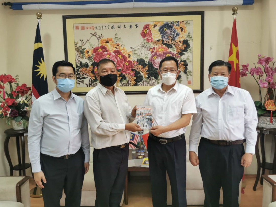 亦是砂中医师暨传统中医总会(砂医总)会务顾问陈中兴,昨日联袂会长江宗兴、副会长江邦忠,礼貌拜会中国驻古晋总领事邢伟平时,赠予所著《马来西亚砂拉越华文报业发展历程》一书,那是以其相关论文中的重点来编印成书。