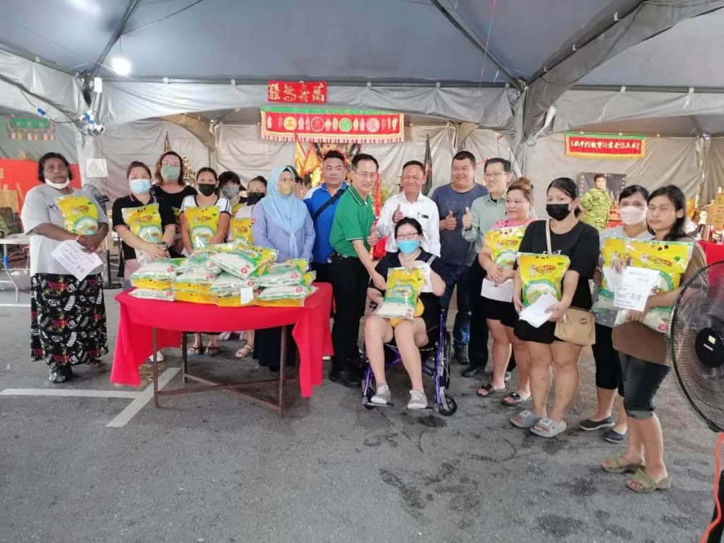 薛华东说,辉盛花园广圣宫除了资助有关弱势的单亲妈妈们投保社险家庭主妇保障,也布施白米给她们,并感谢社险砂局长陈邦正也参与此活动。