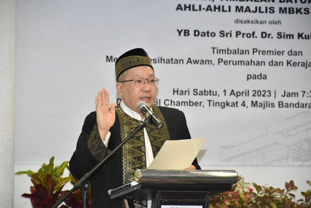 在砂副总理兼砂地方政府与房屋部长拿督斯里沈桂贤的见证下,宣誓就职成为古晋南市市长。