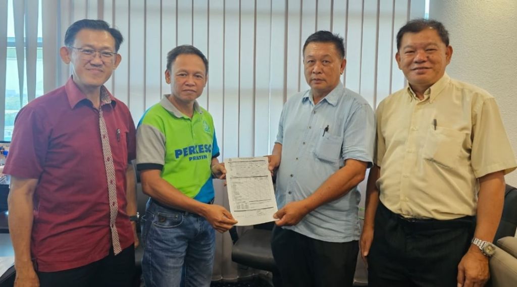 蔡礼仪昨日在坊间社险福利觉醒协调员薛华东、陈中兴陪同下,拜会社险砂局长陈邦正,并致感谢卡给社险。