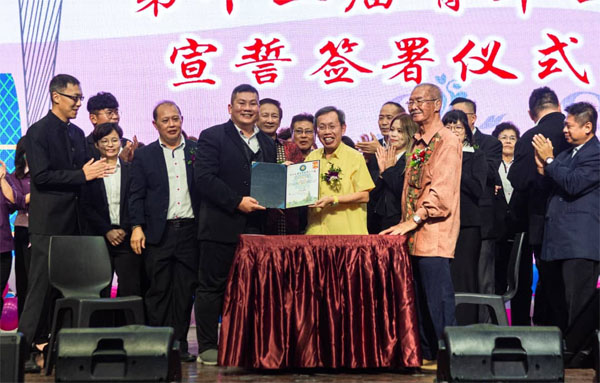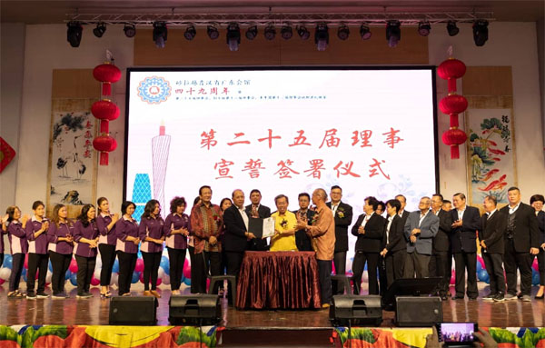 拿督阿玛沈桂贤将宣誓书移交予晋汉省广东会馆会长郑雅泰.