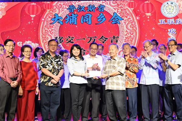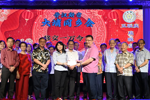 在五联庆的喜庆氛围中,张健仁也宣布拨出1万令吉予大埔同乡会、古晋市国会议员俞利文也拨出8000令吉。