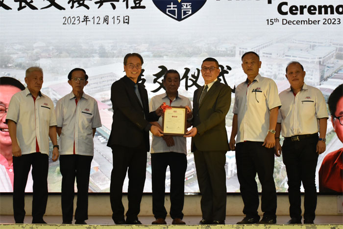 他说,作为一位服务那么多年的华教工作者,我们都要学习叶宗元校长坚守教育岗位的信念,我也代表校董会向叶校长表达敬意,感谢你那么多年来的付出和贡献。当然,叶校长在卸下校长的重任后,将接受我们校董会的邀请,到校董会服务,协助校董会往后所要完成的多项计划中的项目,继续关心中中的发展,为校董会提供宝贵的想法和意见。