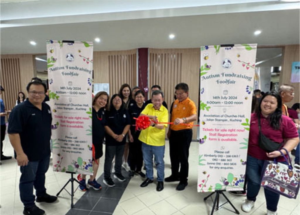 砂副总理拿督阿玛沈桂贤为古晋自闭症美食义卖会主持开幕剪彩。
