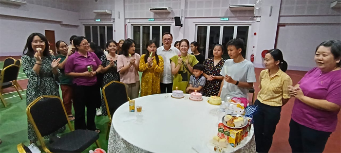 (古晋18日讯)巴都吉当区议员罗克强感谢古晋38爱心慈善基金会、古晋爱心书协会为救世军的儿童举办中秋节晚宴。
