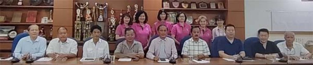 坐者左起交通组副组长黄家全、交通组副组长黄道风、秘书王振、大会副主席李挺闻、大会主席拿督余志豪、筹委会主席吴孟敦、副财政黄灵财、交通组组员张敏以及交通组副组长林光钟;站者左起副招待林光妃、报到组副组长黄蕙玉、报到组组长林光琛、报到组组长郑柳娟、报到组组员何爱珠以及报到组副组黄琬声