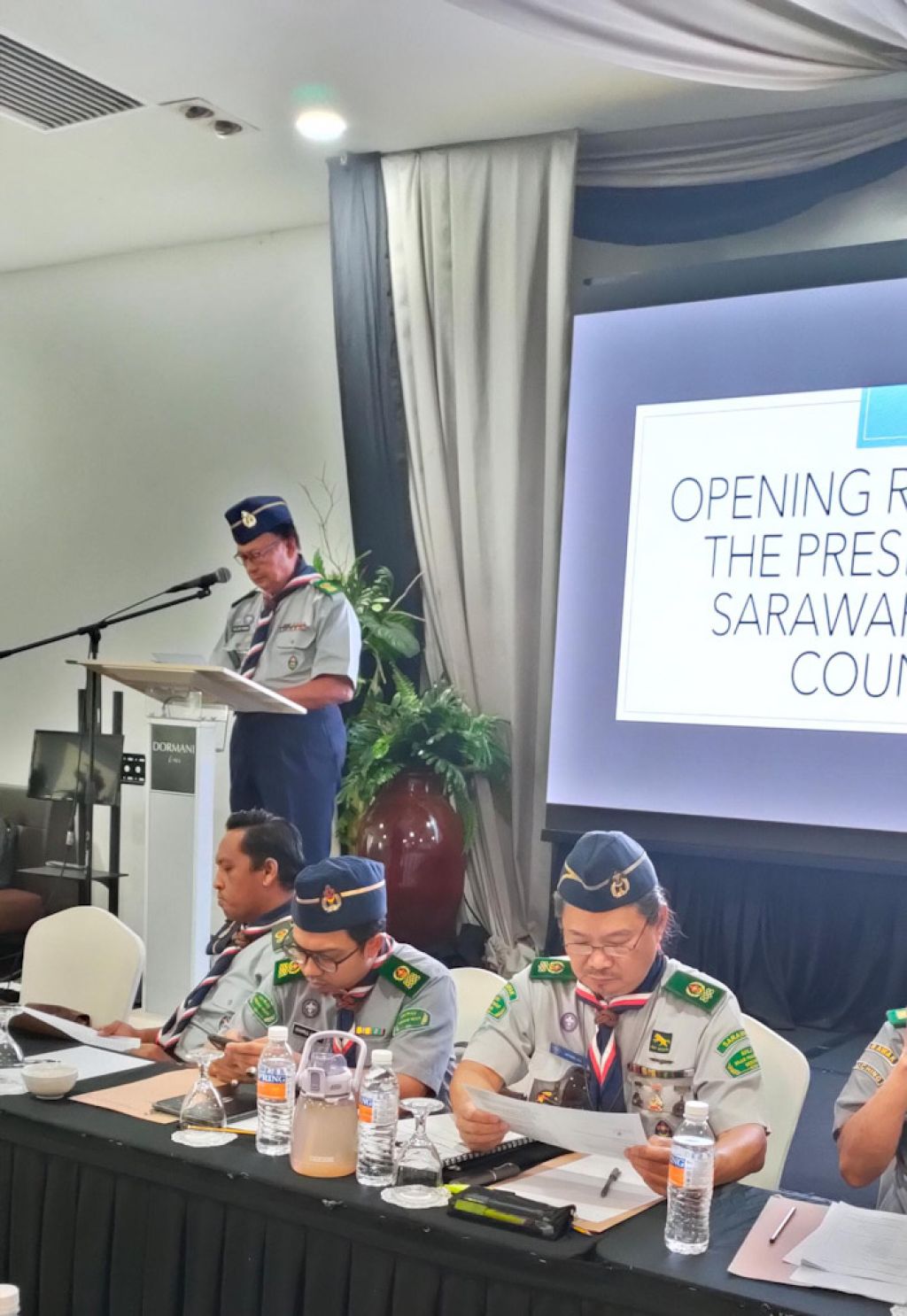 砂拉越童军协会署理会长拿督莫哈末莎菲礼、砂拉越首席童军总监再努丁长官,署理总监林文明先生及梅托迪尔麦丹劳,各级总监及各区童军协会主席也出席了此次会议。