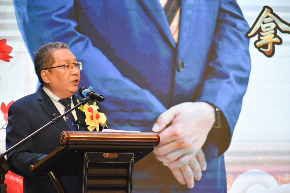 由于砂副总理拿督阿玛沈桂贤不克出席砂拉越云南善堂“新春联欢暨感恩晚宴”,由古晋南市市长拿督黄鸿圣代表。