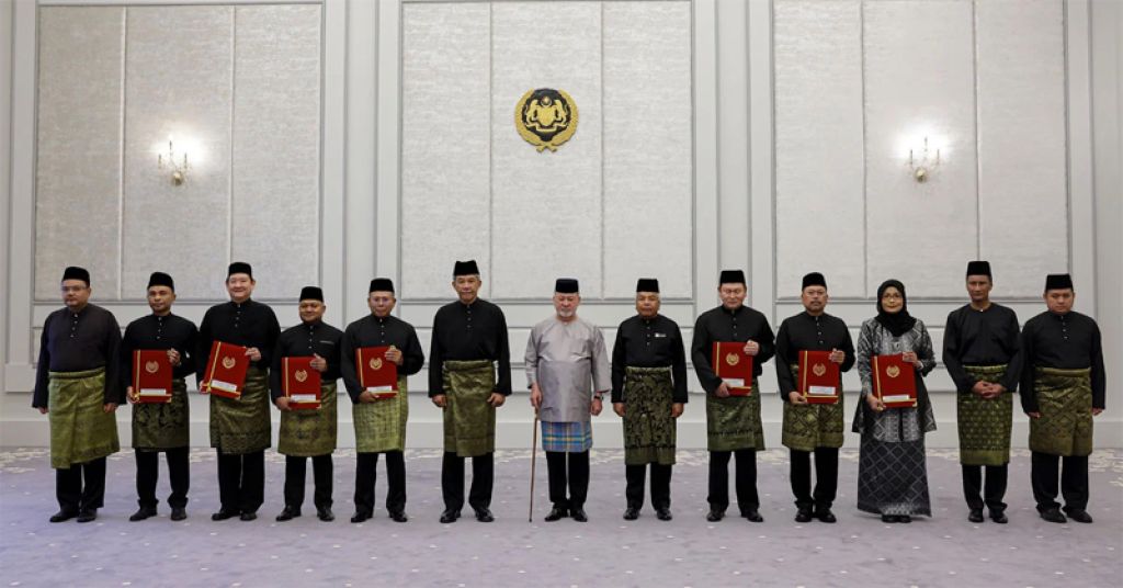 接领委任状的7名新使节,分别是驻泰国大使拿督旺再迪、驻沙地阿拉伯大使拿督赛莫哈末峇克里、驻南非最高专员拿督尤峇兹兰、驻巴西大使拿督莫哈末阿里士拉末、驻德国大使莫哈末拉兹兰、驻西班牙大使哈丝娜莫哈末哈欣,以及驻波兰大使拿督阿兹里末耶谷。