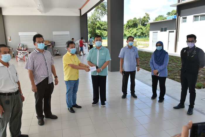 蔡文铎今天陪同砂地方政府与房屋部长拿督斯里沈桂贤巡视新校园。三马拉汉市议会秘长哈查诺哈莉马也到场,并对施工质量表示赞赏。