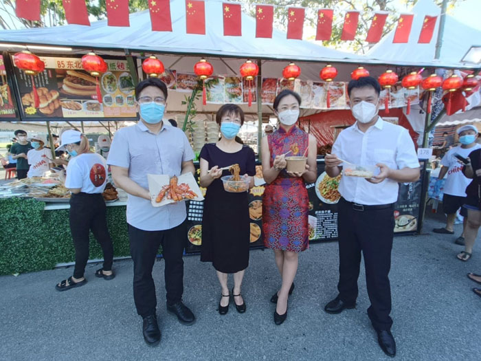 中国驻古晋副总领事宋长虹、邵笑领事、尹万舟领事、薛亮领事昨晚也特别莅临现场推荐中国美食。