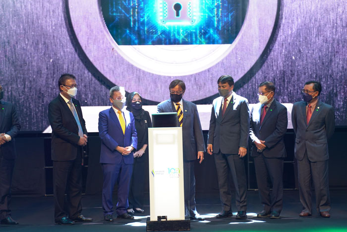 ●砂总理拿督巴丁宜阿邦佐哈里(中)主持砂能源公司供电100周年庆祝活动。左二位副总理拿督斯里沈桂贤。