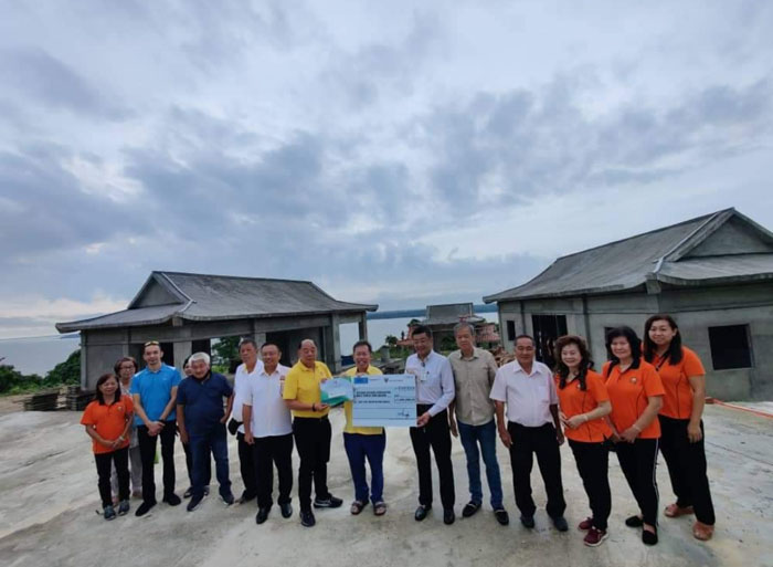 ●砂副总理拿督斯里沈桂贤(右七)移交其他宗教单位的150万令吉拨款予晋福建公会会长拿督黄良杰(右六),充作青山岩妈祖庙建庙经费。
