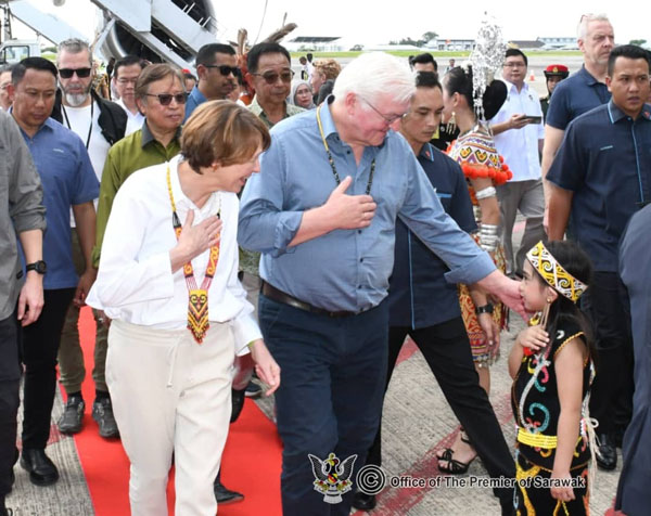 德国总统施泰因迈尔于今日上午10时40分抵达古晋国际机场,他今日的行程包括了游览婆罗洲文化博物馆、砂拉越生物多样性中心和野生动物保护中心。