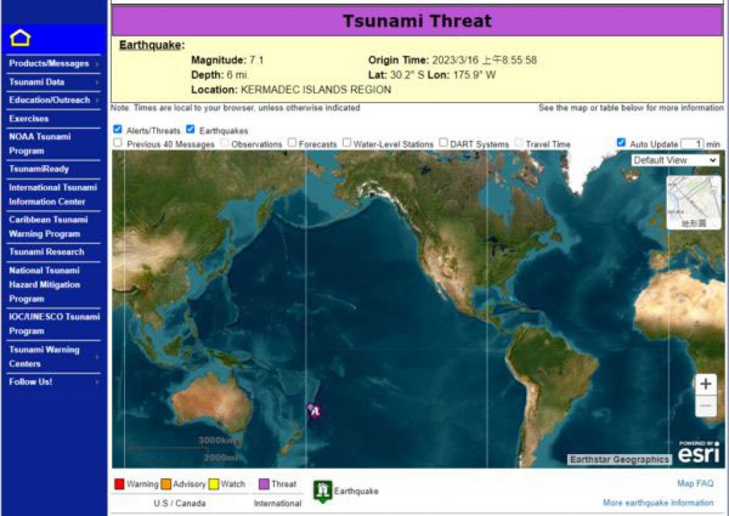 对此,纽西兰国家紧急事务管理局已经证实,纽西兰本岛并无海啸威胁,不过稍早仍对克马得群岛全境发布临时威胁警告。菲律宾火山及地震研究所也表示不会受到海啸威胁。