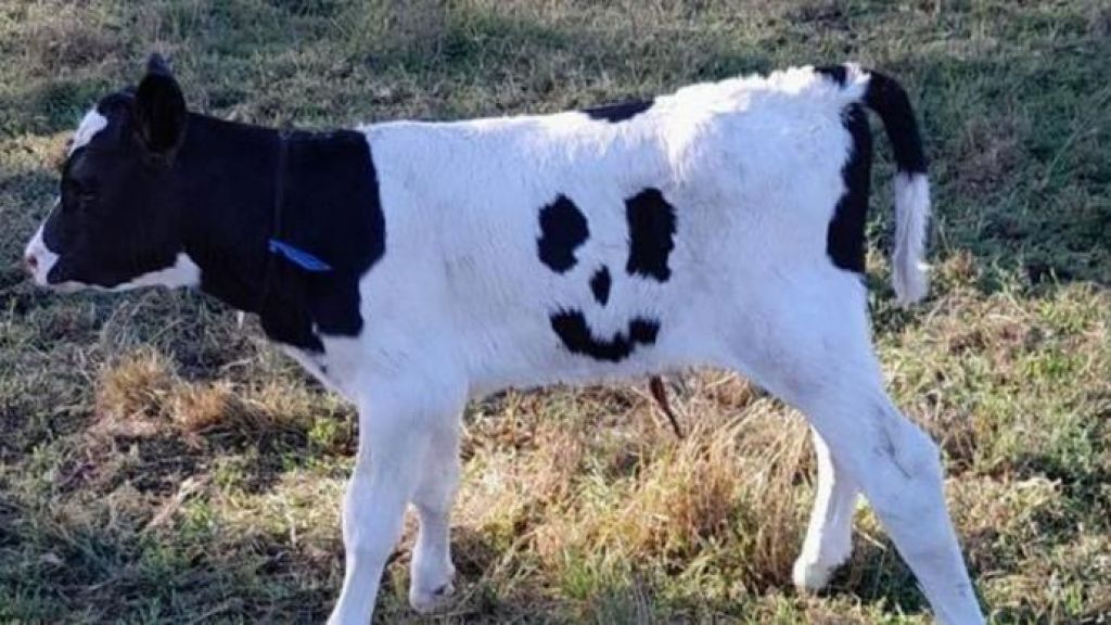 澳洲9号电视网报道,维多利亚州西吉普斯兰区“贝尔布鲁克荷斯坦”养殖场发现一头特别的小牛,其身上有着独特的笑脸图案被老板科斯特发现。