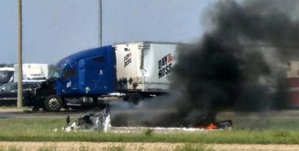 加拿大发生严重车祸至少15死 现场燃起大火!