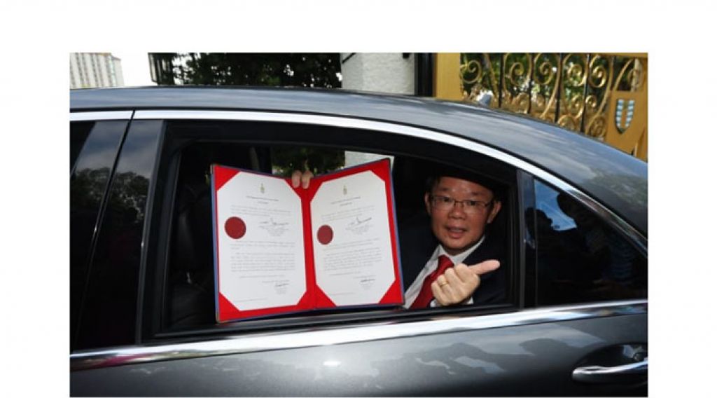 槟州首长曹观友周二上午8时到州元首府,觐见州元首敦阿末法兹,取得州元首签名御准,该州议会将在28日解散。