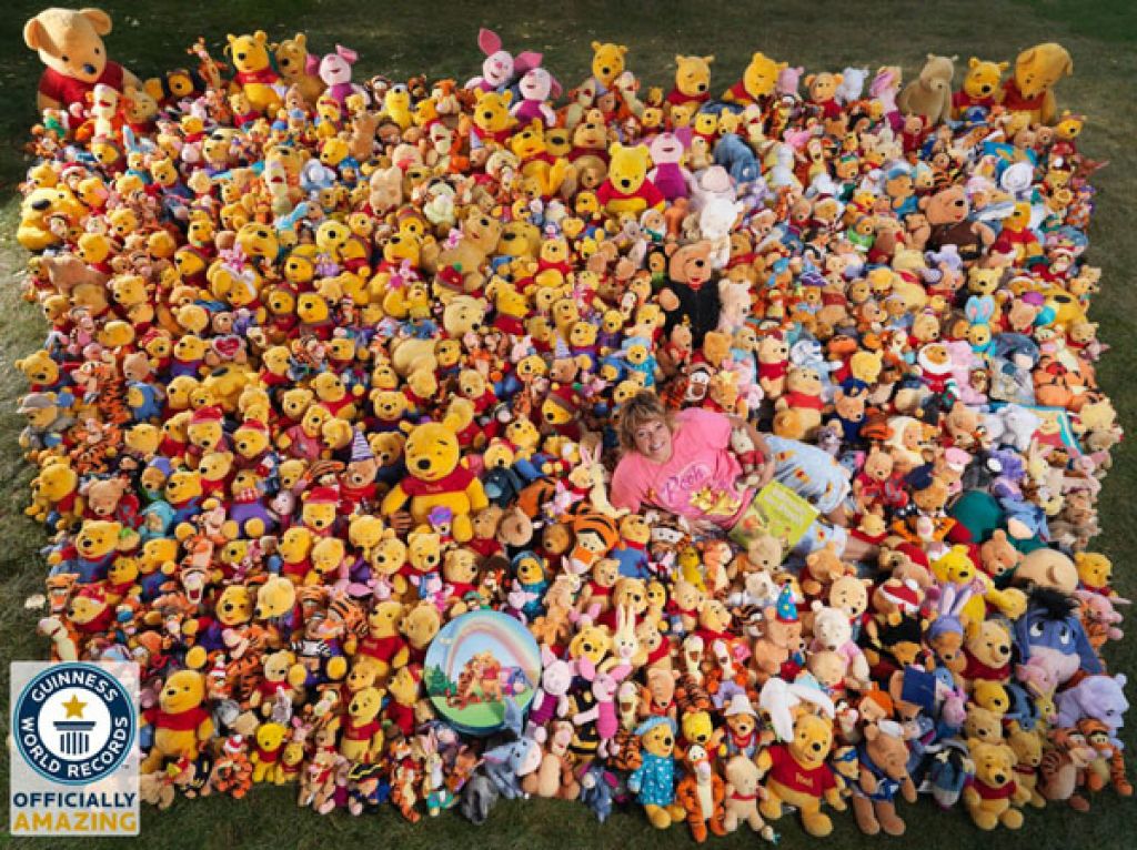 住在美国威斯康辛州沃科夏的58岁女子霍夫曼从20多岁开始搜集小熊维尼的周边商品,包含驴子屹耳、跳跳虎和小猪在内,现在已搜集2万3623件,创下新的金氏世界纪录。