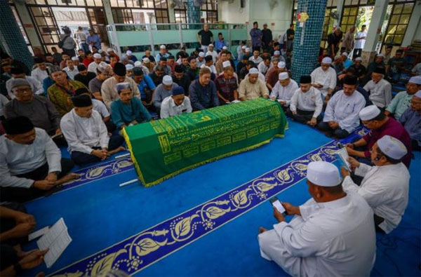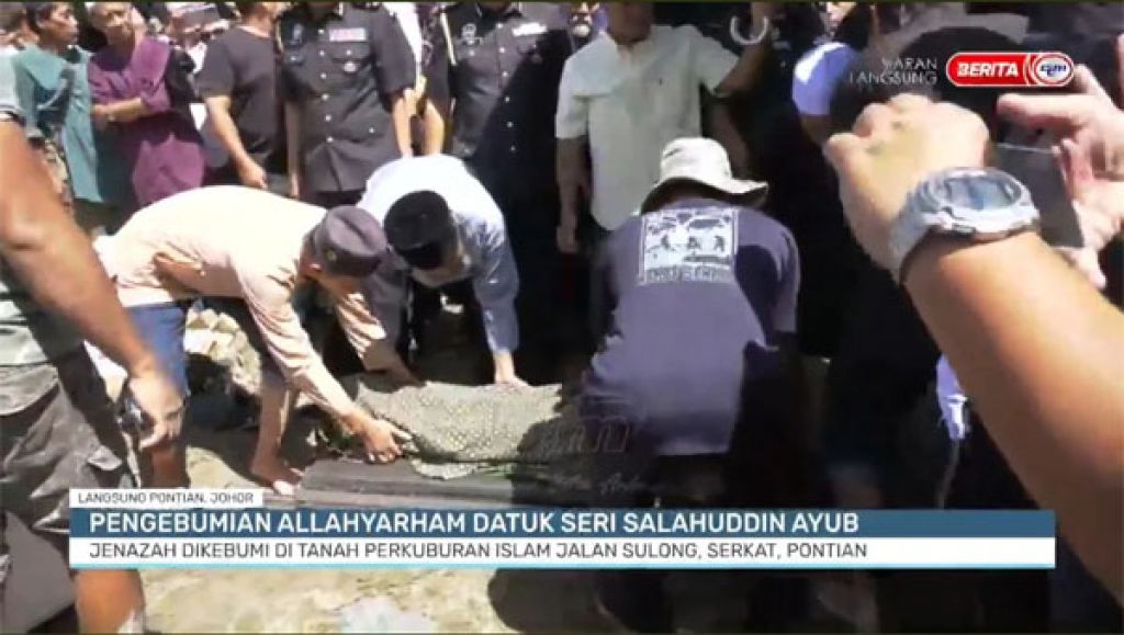 (笨珍27日讯)国内贸易及生活成本部长拿督斯里沙拉胡丁阿育的遗灵,从拿督哈芝诺加都清真寺离开后,今日中午已运抵实叻角的马来墓园安葬。