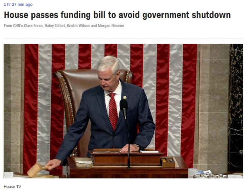 众议院通过后,该法案将提交给参议院审议,参议院必须在当地时间17日前批准该法案并送交美国总统拜登签字,方能避免政府关门。