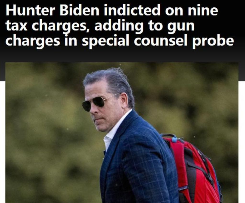 拜登儿子亨特被控9项税务罪 或面临最高17年监禁