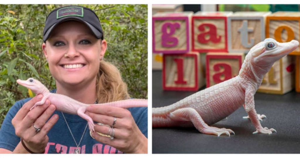 美鳄鱼乐园孵化“白变鳄鱼” 全球仅7只