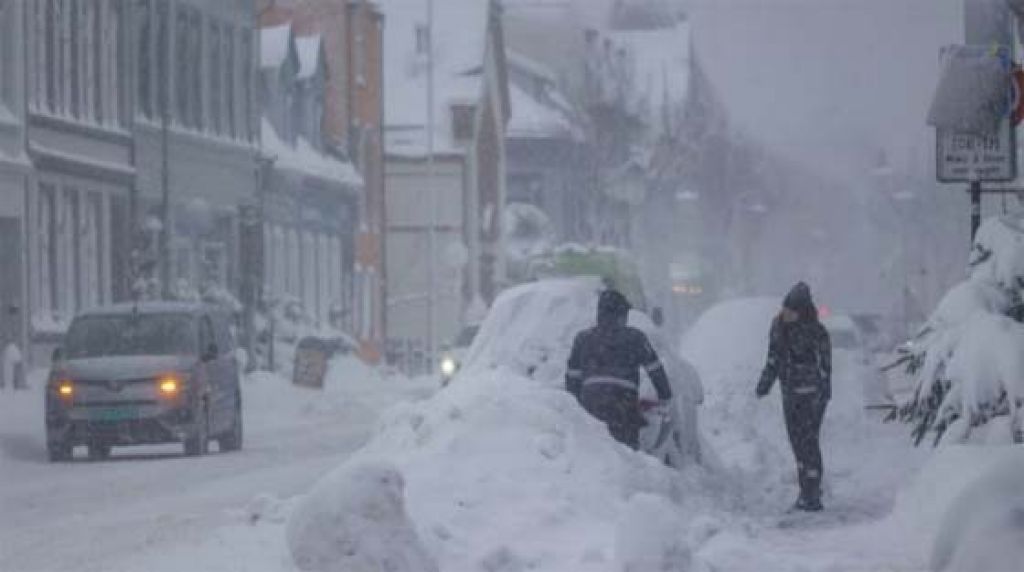 在挪威南部小镇阿伦达尔,官员宣布学校将于周三关闭,因为道路上积雪无法及时清理。