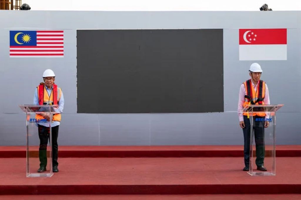 2021年动工兴建的新柔捷运系统今日庆祝重要里程碑,衔接新马跨海高架轨道的钢筋混凝土结构已建好,把两国分别负责承建的桥墩正式衔接。