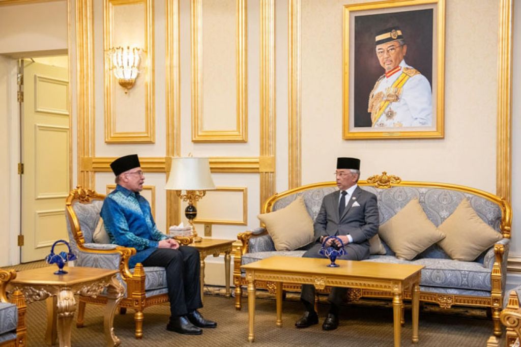 国家元首本月30日卸任 与首相举行最后一次内阁前会议 24 01, 2024 登载于 大马 首相安华(左)向苏丹阿都拉陛下进行汇报时摄。 (吉隆坡24日讯)首相拿督斯里安华周二到国家王宫进谏国家元首苏丹阿都拉陛下,举行元首卸任前的最后一次内阁前会议。 苏丹阿都拉陛下是我国第16任国家元首,陛下的任期将于1月30日届满。 国家王宫在脸书发贴文表示,这次会议对陛下而言很特别。出席今日会议者包括政府首席秘书丹斯里莫哈末祖基阿里。 “自从陛下出任国家元首以来,包括今天,已经出席160 次内阁会前会议,且经历4任首相。” 内阁前会议是陛下每周或例行的主要活动,针对政府相关事务及问题与首相讨论和交换意见。 更多相关: « 法米:安华不曾下令查 “敦” 促马哈迪应晚年自省 国际旅客春节首选热门目的地 大马排名第三仅次日本泰国 »