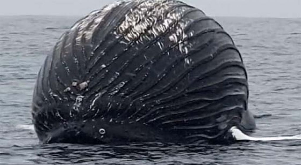 他说,他和船员在安多亚岛附近划船时,赫然看到约半英里外有一个巨大的黑色球体在海面漂浮,当逐渐靠近后,才发现是座头鲸的尸体,头部朝下,绷紧的腹部露出水面,外形十分诡异。达格和船员见状马上把船驶离100米外,因为他们知道它随时爆炸。