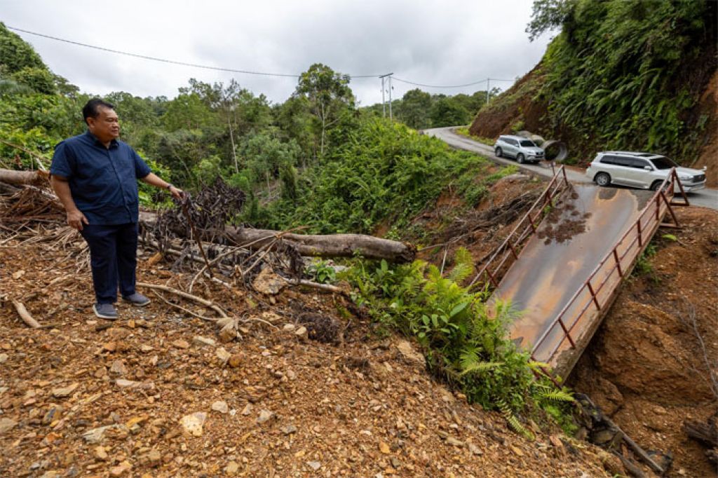 工程部长巡视 加帛双溪勇南迦蒂萨坍塌的大桥