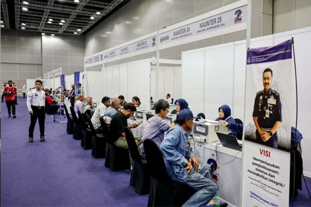 根据观察,警方在现场设立25个缴付罚单柜台,其中7个是专门替残疾人士(OKU)、年长者和孕妇服务的柜台。