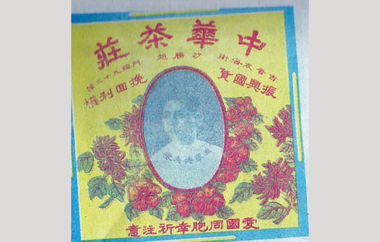 2、30年代适逢中华民国刚成立不久,且又国势衰弱,那时代的商人,包括在南洋地区的华商,往往会在商标纸上加印“振兴中华”的激励性口号,而连茶庄都取名“中华”的王家传,除了以一对栩栩如生的金鱼,作为其商品的注册商标外,更在其所销售的中国茶叶包装纸的正面,加印“振兴国货、挽回利权”的口号,且于包装纸的中央,印了他年轻时的个人肖象,还在下方另加了一句“爱国同胞幸祈注意”。