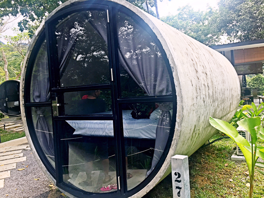 好啦,说了那么多,也是时候描述下度假村的点滴,它的设计非常创新,使用大型水泥管改造而成,到处都是圆溜溜的“房间”,的确在视觉上得到不一样的感受。