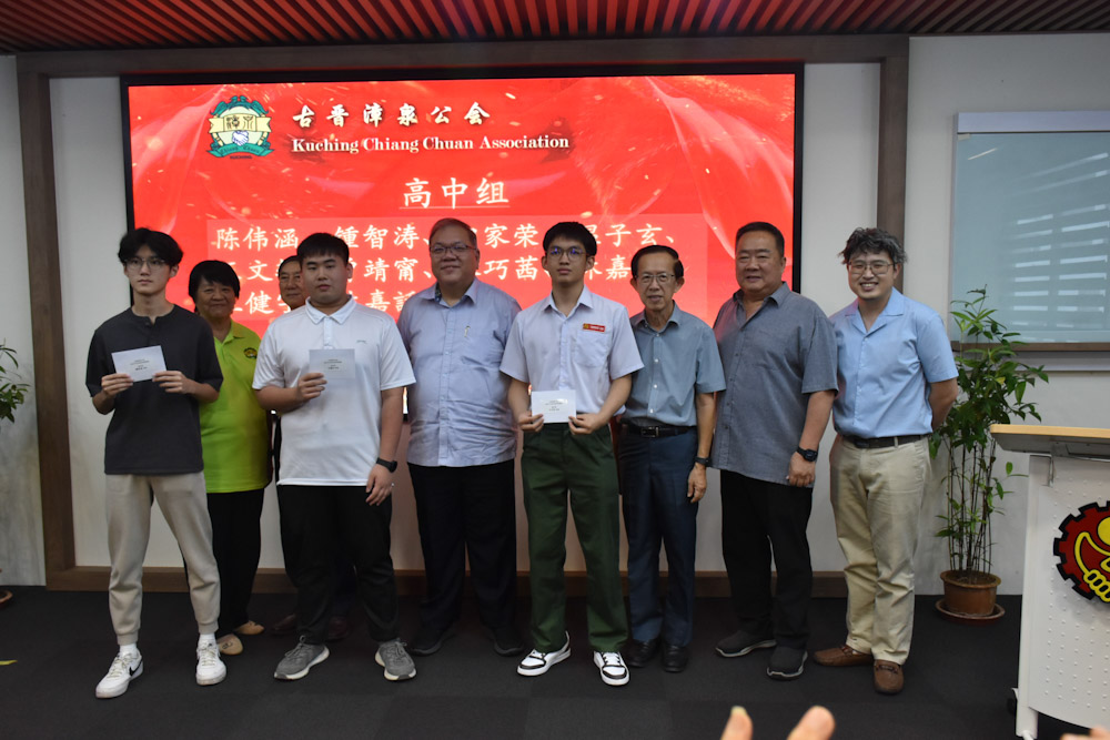 他代表古晋漳泉公会全体理事,向所有获奖励金的同学致以最热烈的祝贺!同时,也要向含辛茹苦培育子女的家长们,表达最崇高的敬意与最真挚的感谢。