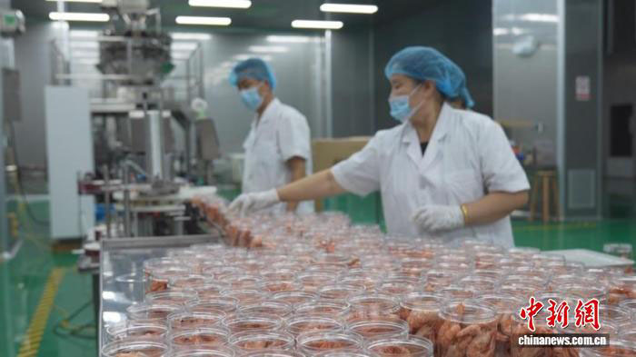 走进温州金海岸食品公司的无菌厂房里,只见活蹦乱跳的鲜虾先被冰水刷去海水咸味,再用低温急冻凝住原始鲜甜,最后低温慢烤,短短五分钟,虾身变得绯红,虾香四溢。据悉,2024年,这条虾干产线创造出了超600万元(人民币,下同)的销售额。