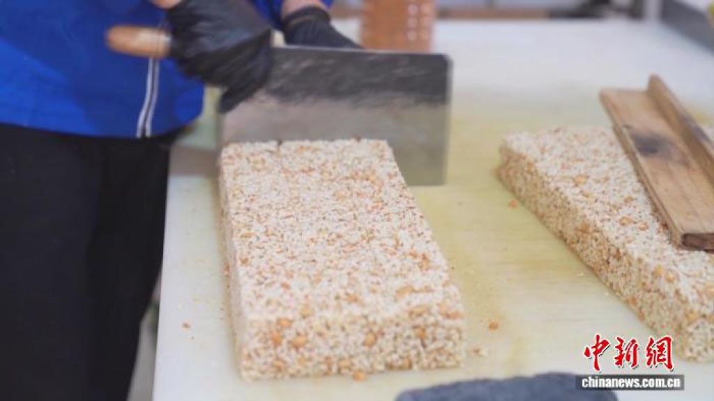 来到龙港芦浦街,空气中早已氤氲着炒米的甜香。据悉,炒米是龙港人撰写自己“味觉记忆史”的通用语言,其以优质大米作为原料,配以糖汁、花生、桂花等辅料,经炒、熬、压、切等多道手工工序,成就酥松柔软的口感。