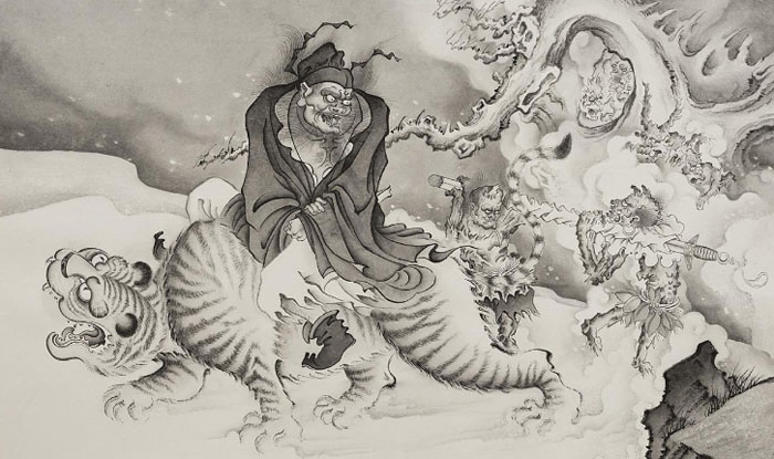再看预告片中的两位侍从,很可能取材于清代刘璋所作的长篇神魔小说《斩鬼传》。小说记载,钟馗有两名助手,分别名为“含冤”和“负屈”。而片中骑虎的造型则与扬州画派代表人物华喦的《钟馗降福》、明代的《钟馗骑虎图》等画作遥相呼应。